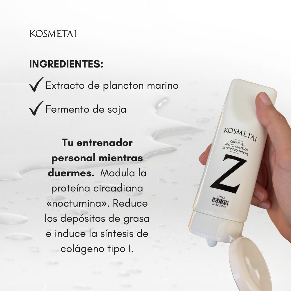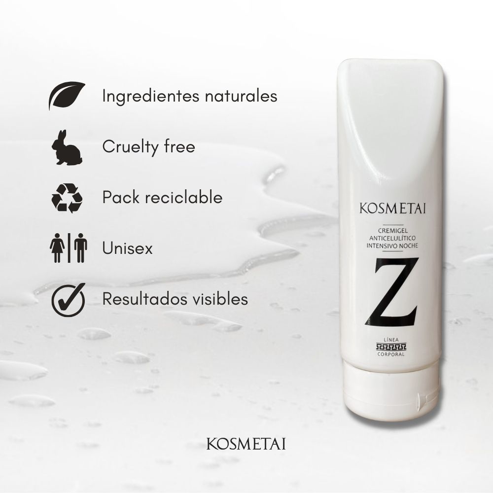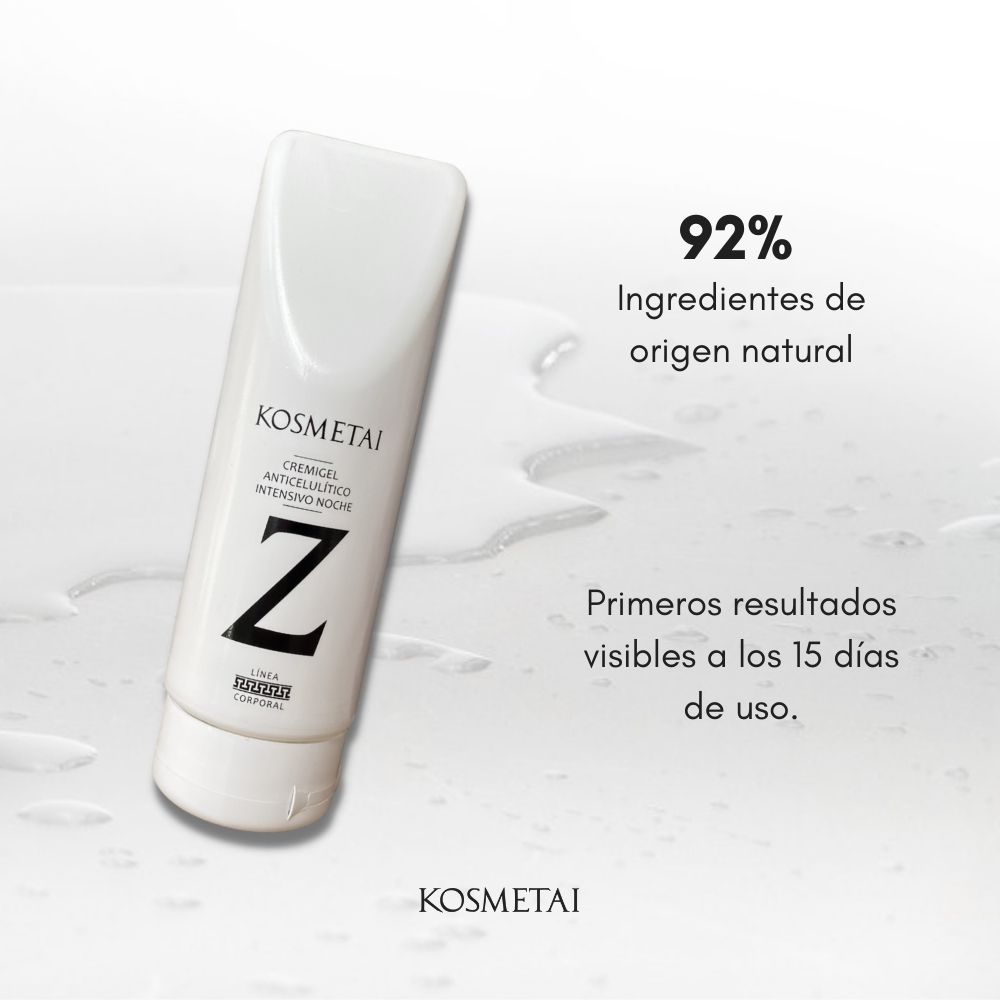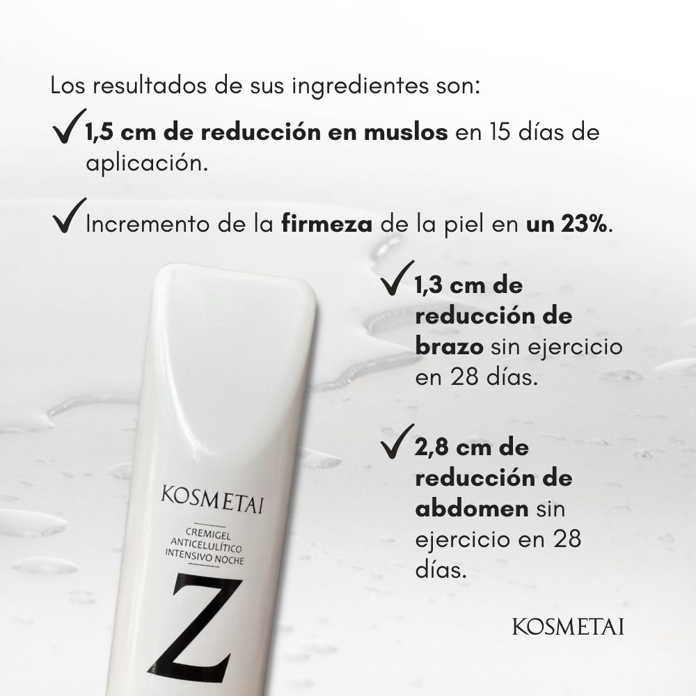 El cremigel anticelulítico intensivo noche de KOSMETAI es un producto único en el mercado que cumple su objetivo y contiene ingredientes más potentes que la cafeína. Fórmula innovadora con estudios in vivo e in vitro que garantizan sus resultados.